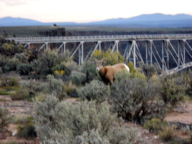 You would be correct in referring to this animal as a Bighorn sheep. As a wildlife biologist I consider “longhorn sheep” a misnomer. There are several different sub-species in the United States, California; Rocky Mountain; Peninsular; Desert…This one is probably either Desert or California. I’m not 100% sure which sub-species roams the Taos area. This is a young Class II ram, probably 3-5 years old.